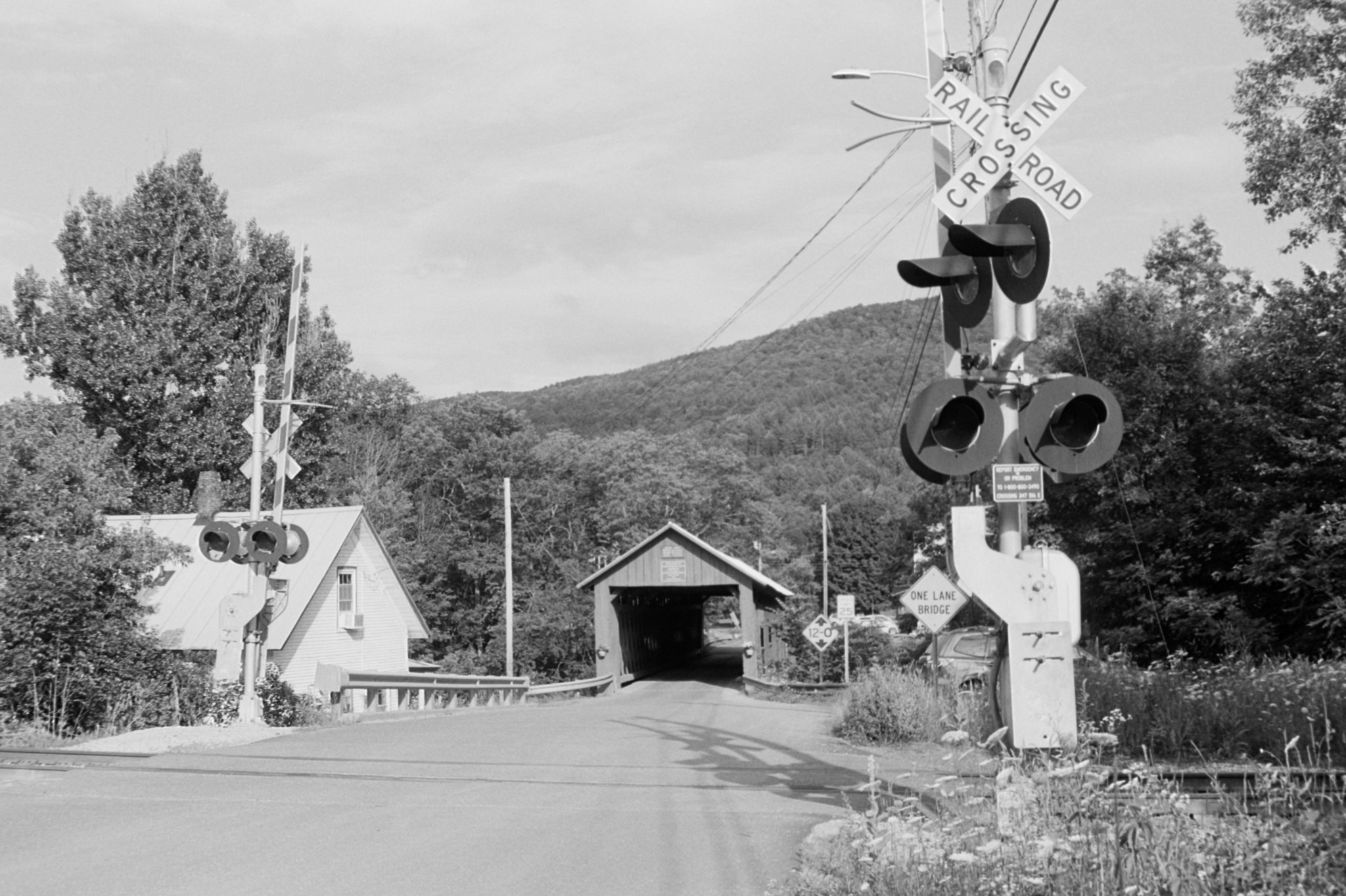 During our July vacation, Rachel, Eliza, and I went to Vermont to visit friends and family. While we were there, we had a nice picnic on the farm, where there is a nice view of Snake Mountain. Driving between Montpelier and Middlebury, we stopped at four different covered bridges, three of which are near each other on one stretch of road in Northfield Falls. We also stopped at a scenic overlook on Route 27 in Lincoln Gap, and I took a few photos of the old train depot in Ferrisburgh, which is probably going to be moved soon.