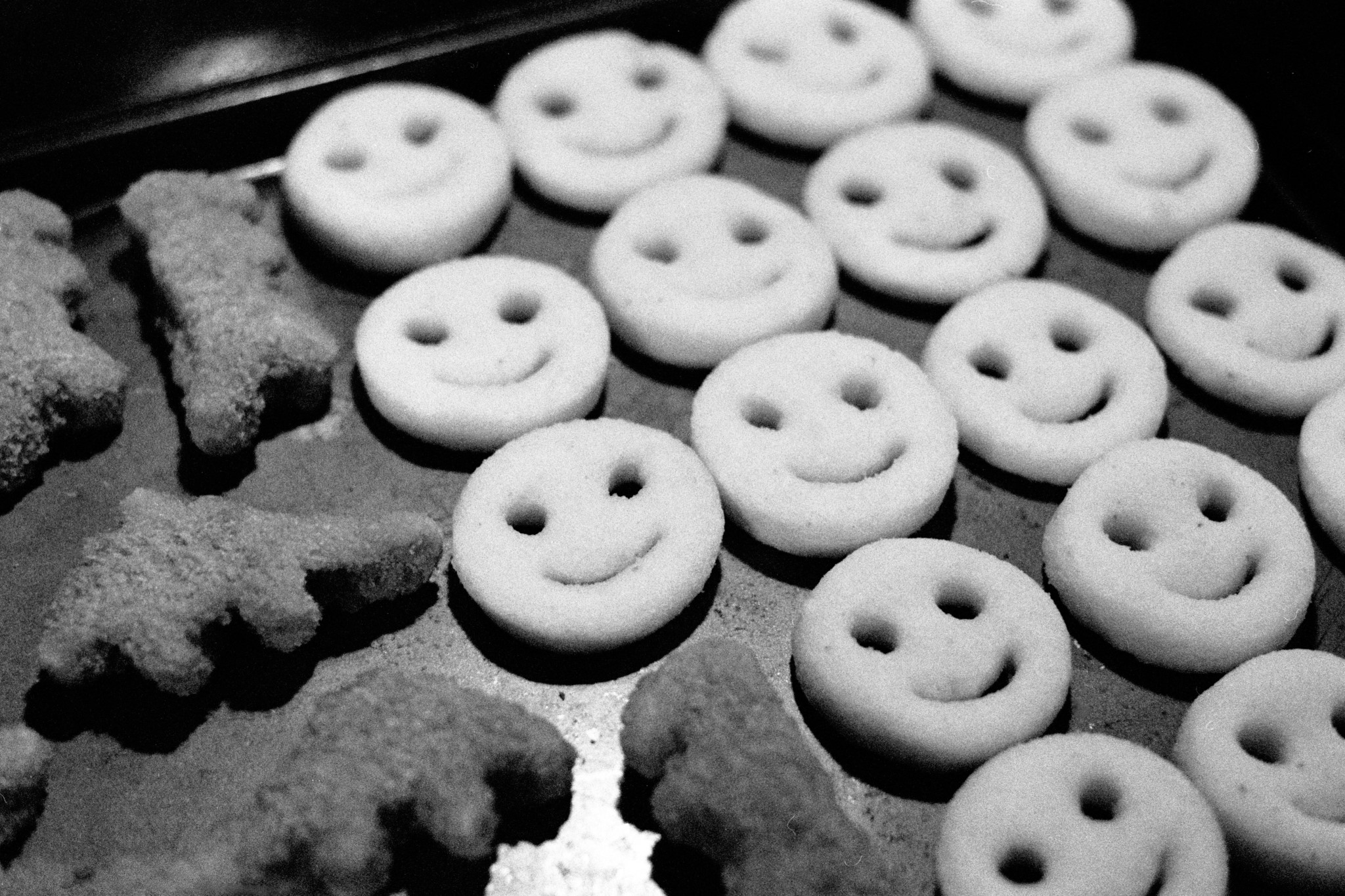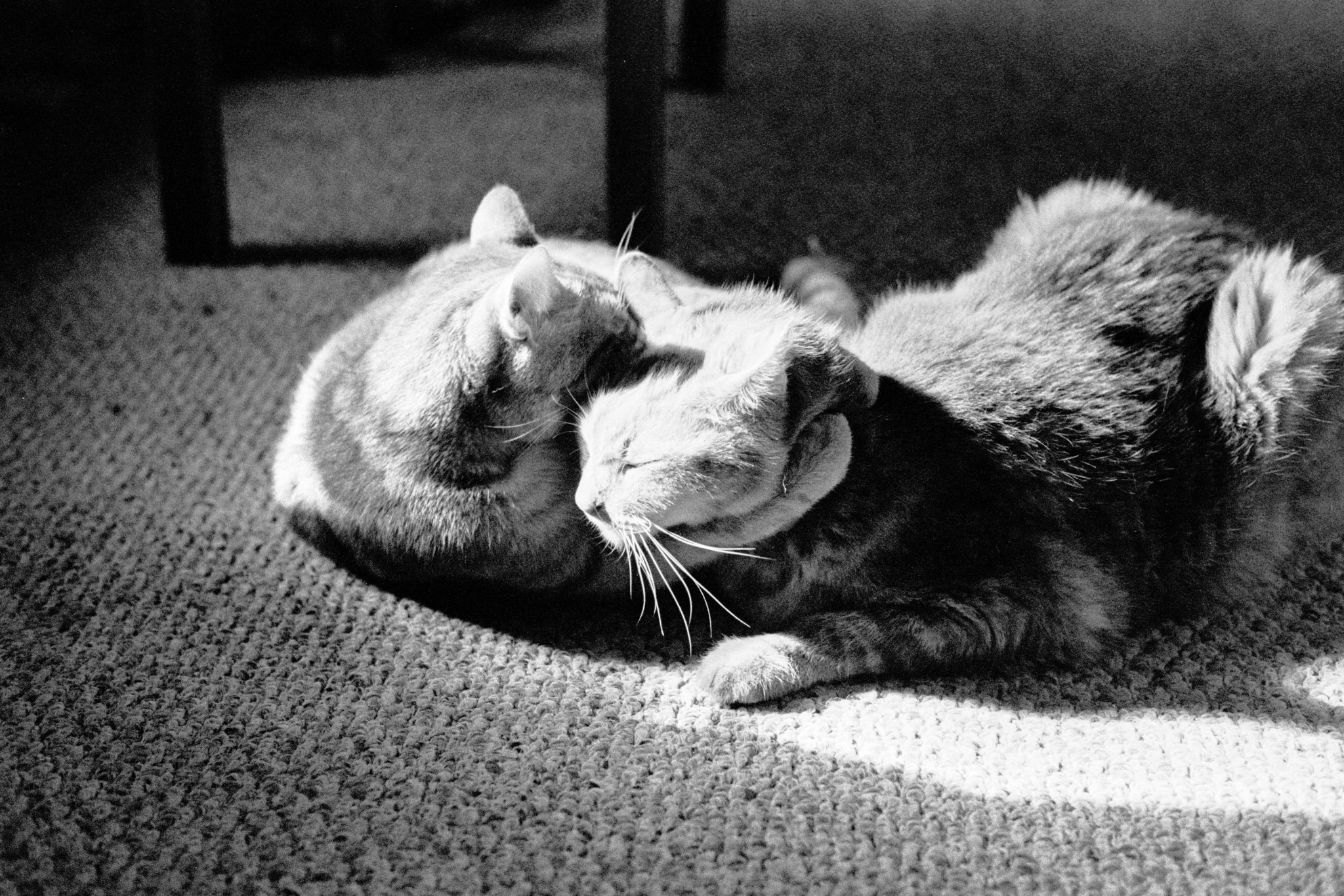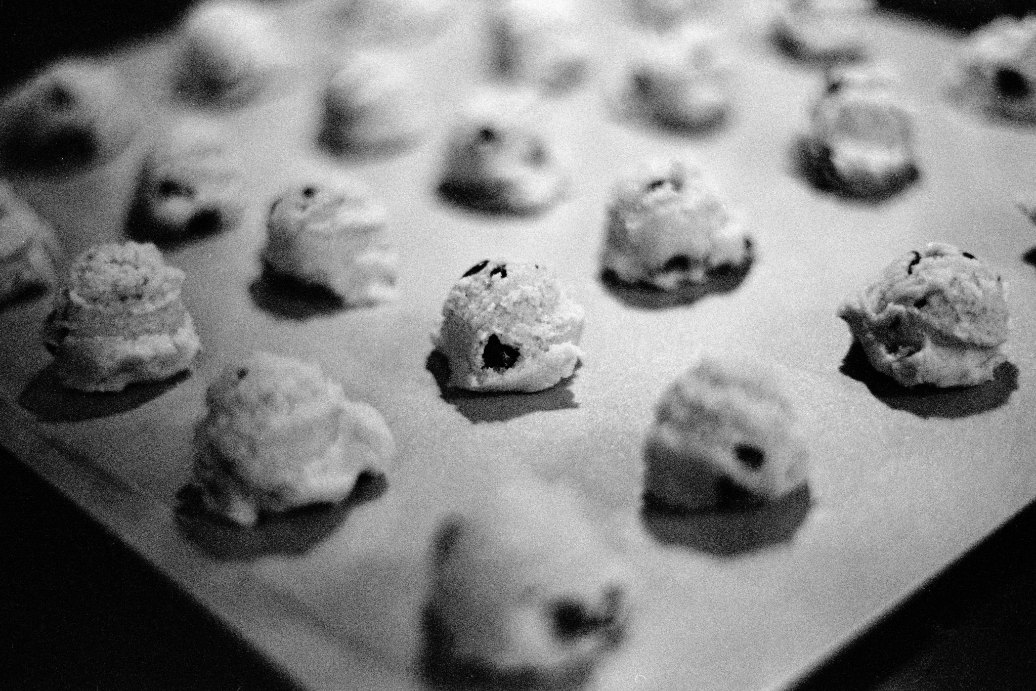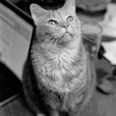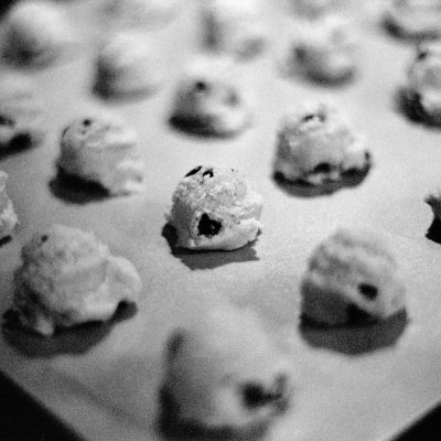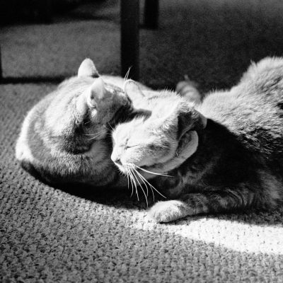 I decided to try pushing a roll of Kentmere 400 film to 800, and do some indoor photography. Rachel and I made dinner and a batch of cookies, and I took some photos of the cats. Later on, I went for a walk at Winslow Park to finish off the roll.