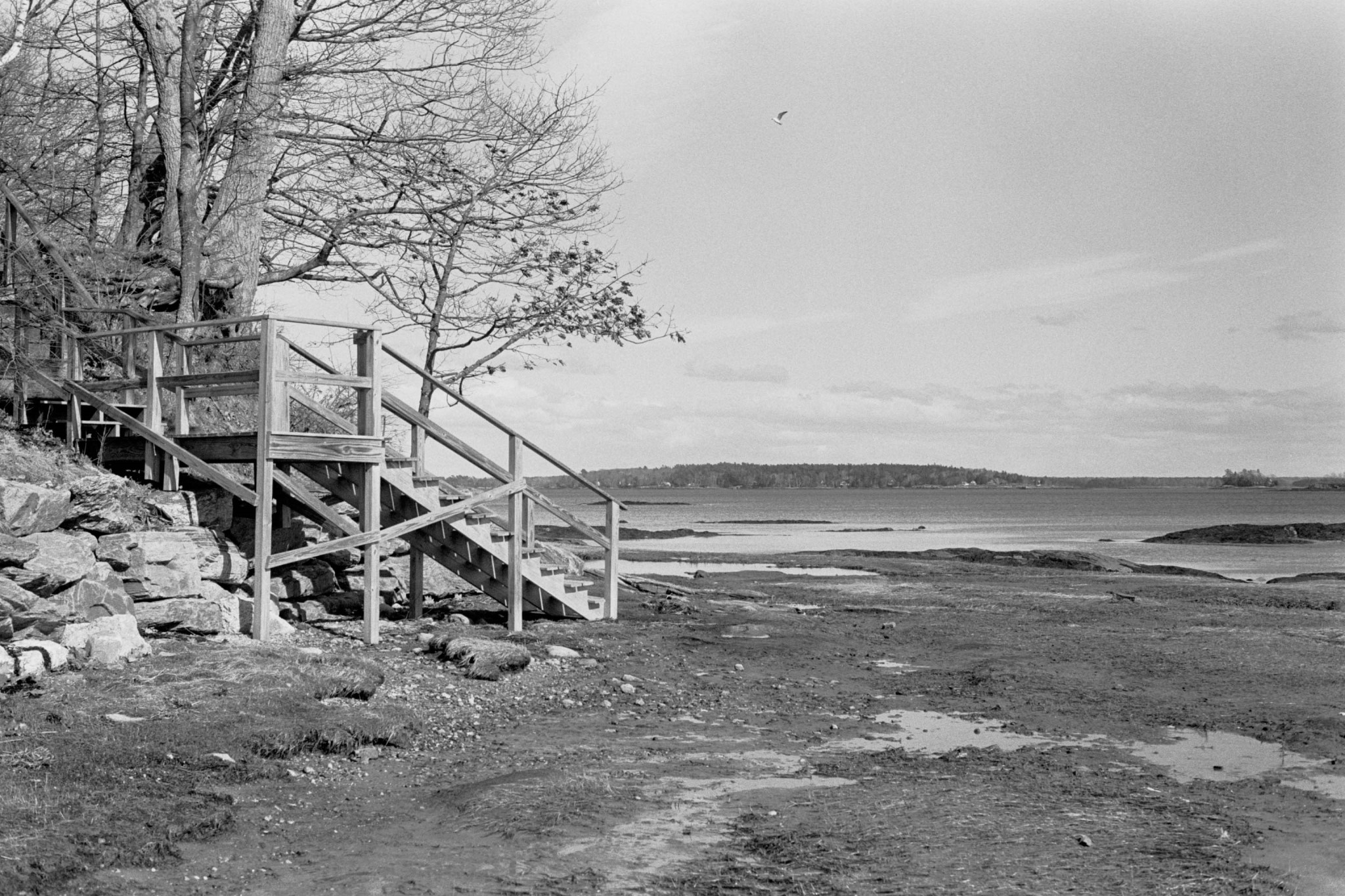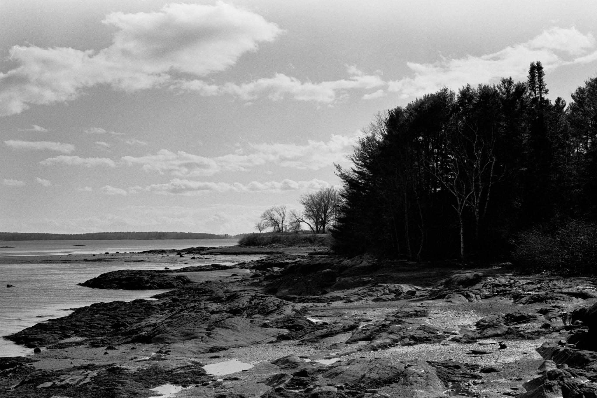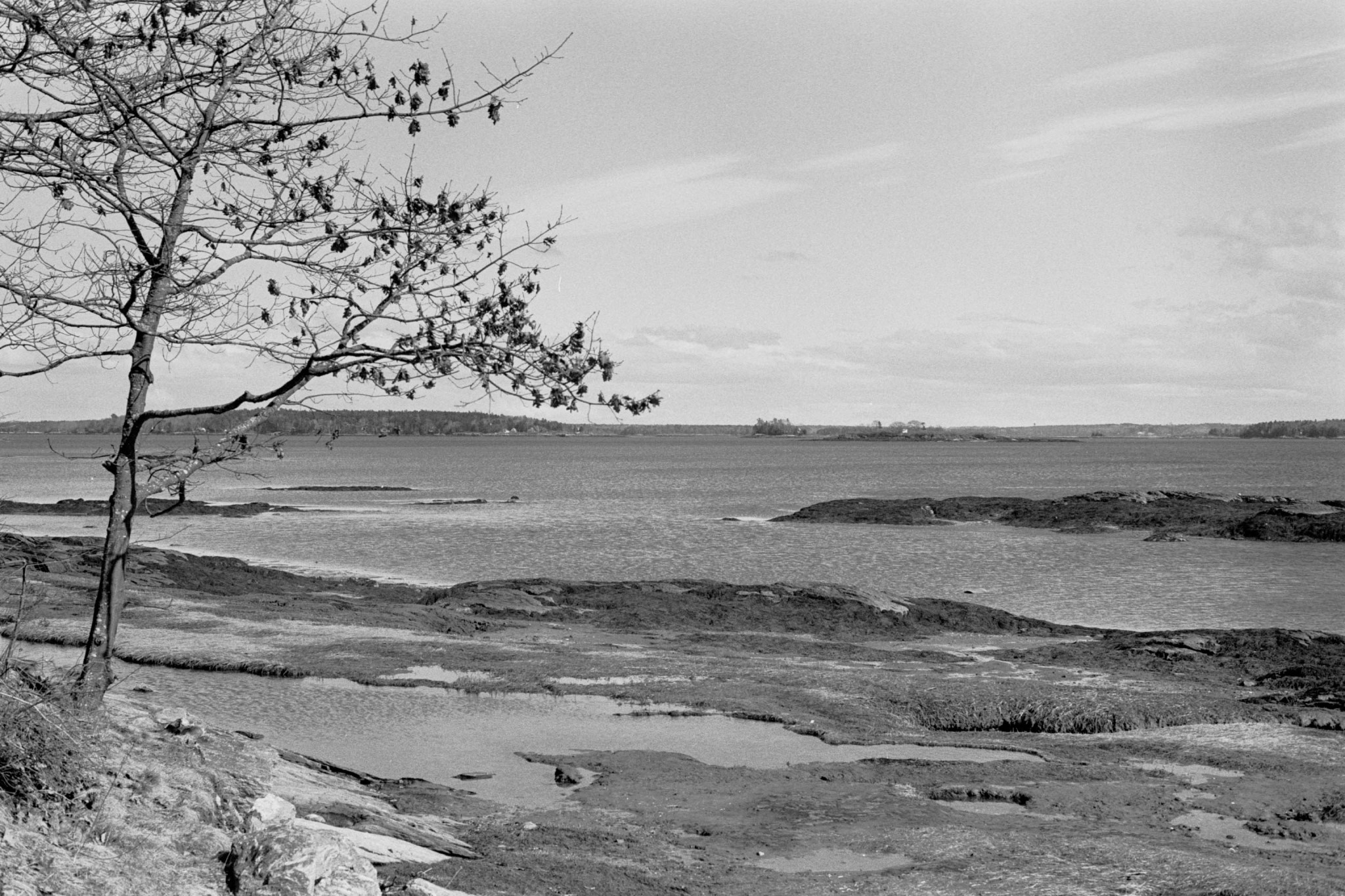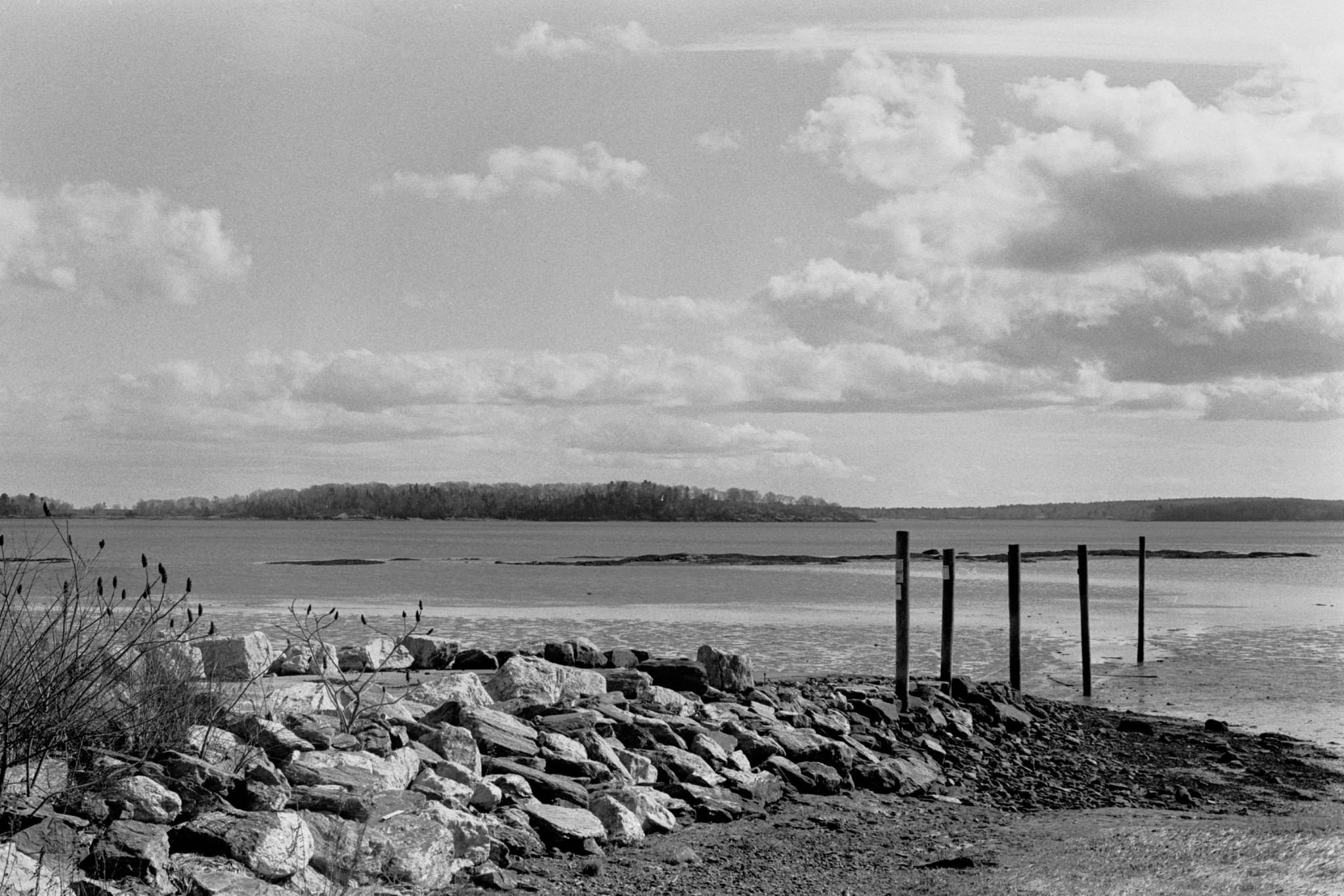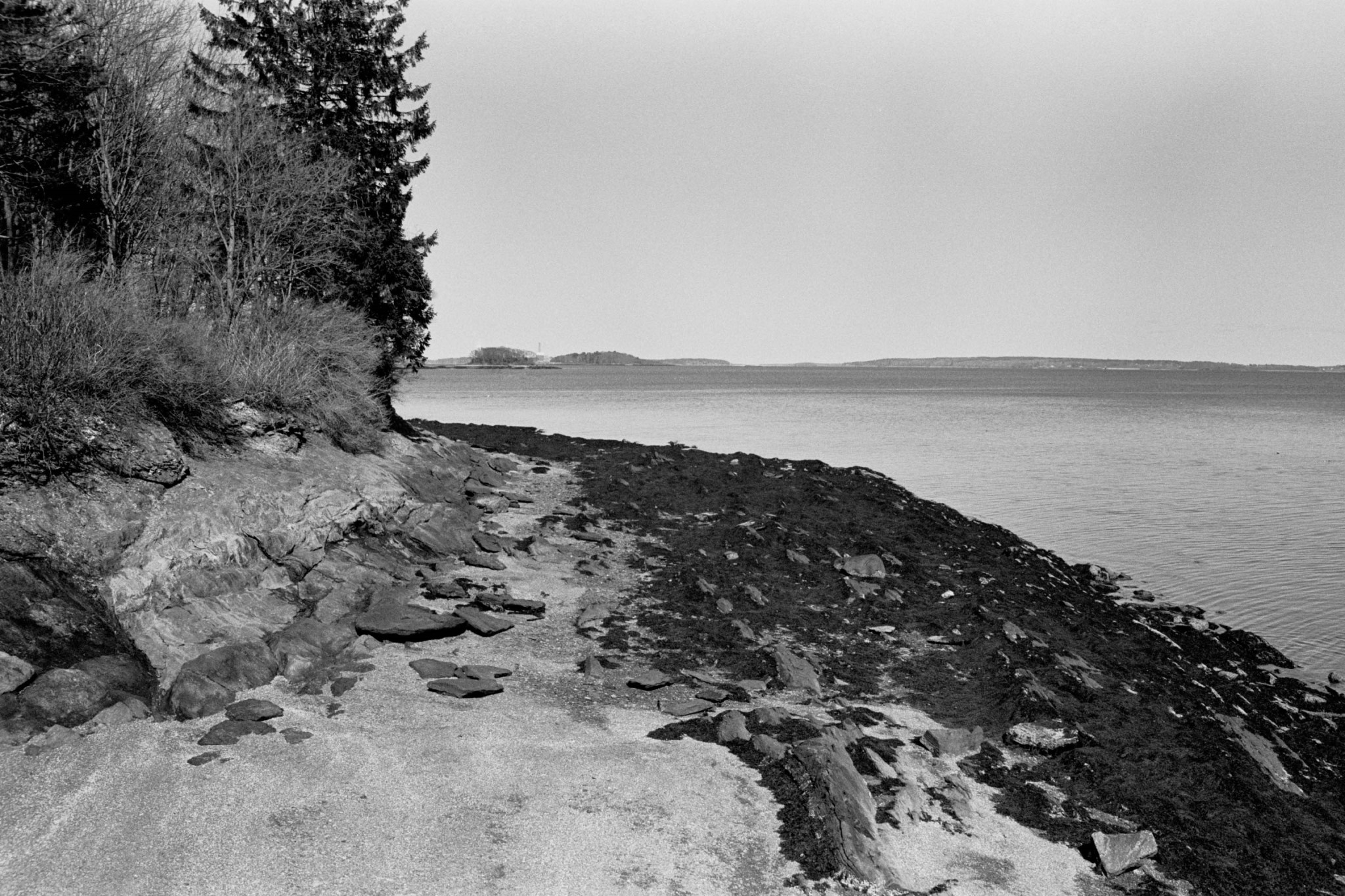 I decided to try out a roll of Kentmere 100 film for the first time, so I took some photos on one of my regular walks at Winslow Park. A few days later, Rachel and I went for a walk at Mackworth Island in Falmouth, which has a lot of scenic views of Casco Bay. I also took a few photos of Pumpkin and Piper, using a flash.